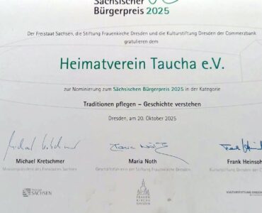 Verein Heimatverein für den Sächsischen Bürgerpreis 2025 nominiert 21. Oktober 20257 haben es gesehen
