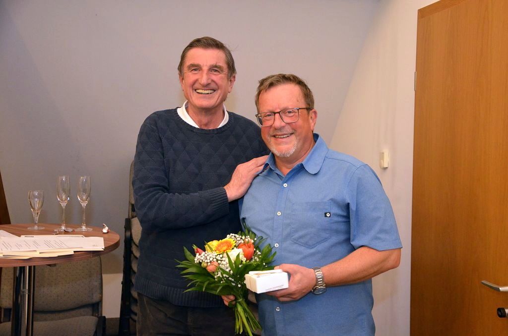 Îm Verlauf der Versammlung bedankten sich die Vereinsmitglieder bei Reinhard Müller mit einem persönlichen Geschenk der Mitglieder für sein Wirken für den Verein. In einer Dankesurkunde heißt es: „…Mit großem Engagement, Weitblick und persönlichen Einsatz hast du den Heimatverein geprägt und nachhaltig nach vorne gebracht. Insbesondere die Initiierung der Arbeitsgruppen sowie dein unermüdliches Wirken für Gemeinschaft, Zusammenhalt und Weiterentwicklung des Vereins haben bleibende Spuren hinterlassen…“