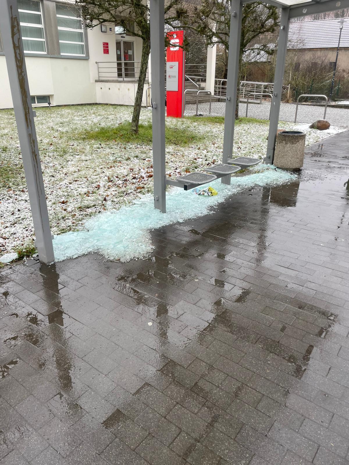 Unbekannte Täter zerstörten Glasscheiben an den Haltestellen vor der Sparkasse, in der Marktstraße sowie in der Dewitzer Straße (Haltestelle Geschwister-Scholl-Straße).